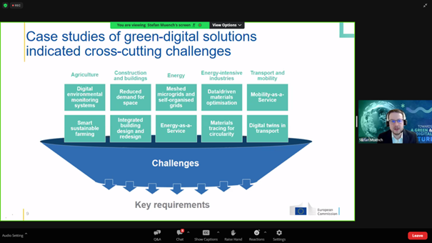Az online esemény világossá tette, hogy a kettős vagy iker átmenet az agráriumra, épületekre és építőiparra, energiával kapcsolatos kérdésekre, energia-intenzív ipari ágazatokra, közlekedésre-szállításra is kiterjed. Ezeket a területeket átszövi az adat és információ technika alapú digitalizáció és környezetbarát, zöld átmenet. Az átmenet politikai, társadalmi és gazdasági hatásokkal is jár, amelyek eléréséhez néhány alapelvnek teljesülnie szükséges. Utóbbiak szerint, többek között, az átmenetnek igazságosnak (senki számára sem hátrányosnak), technológiailag lehetségesnek kell lennie. Elvárás továbbá az Európai Unió keretstratégiáihoz – például a Zöld Megállapodáshoz – való illeszkedés és a közösség társfinanszírozásához való kapcsolódás is.