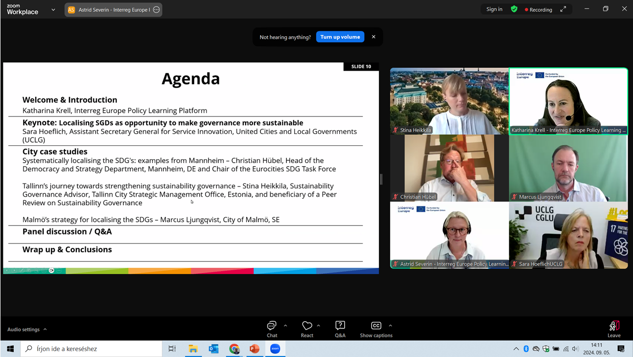 Az Interreg Europe Program Policy Learning Platformja 2024. szeptember 5-én szervezte meg webináriumát a fenntartható helyi szintű kormányzás témában.