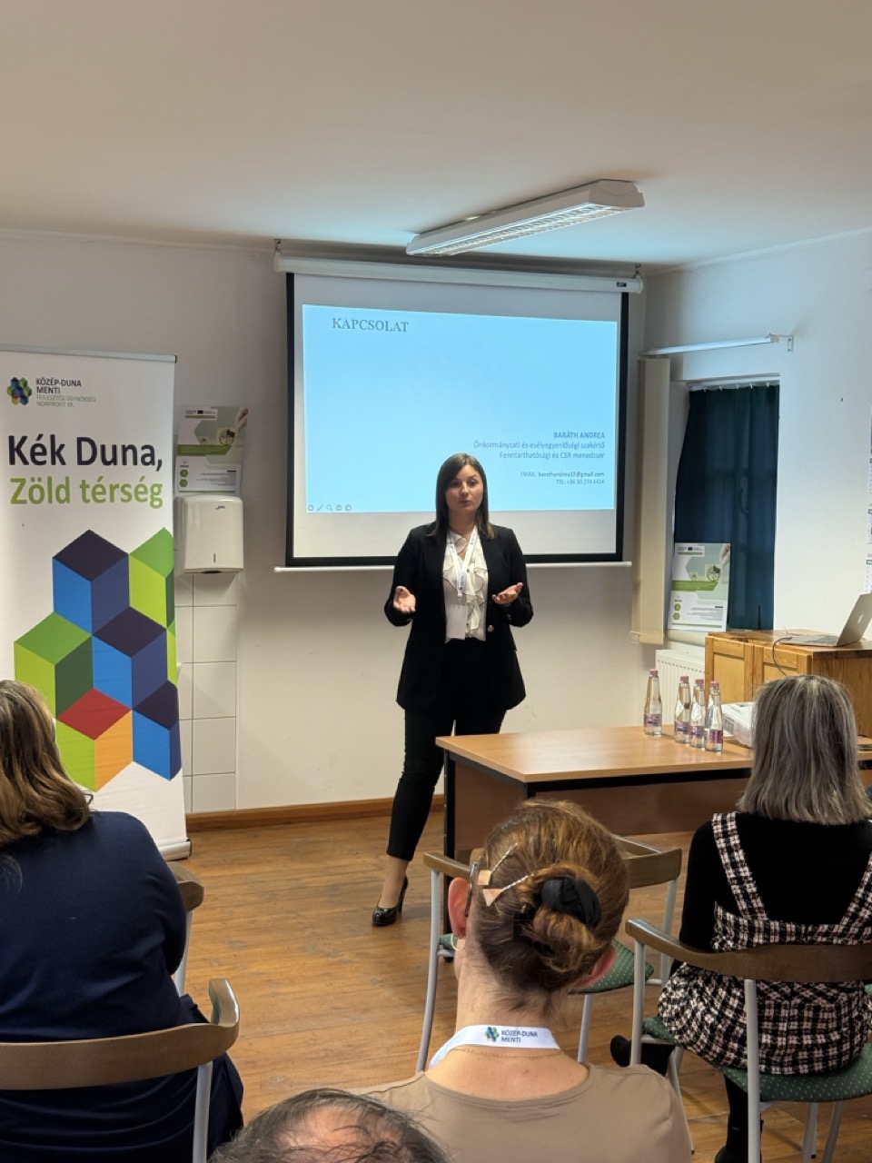 A program középpontjában a körforgásos közbeszerzés és az ESG-jelentéstétel gyakorlati alkalmazása állt. Baráth Andrea fenntarthatósági és CSR menedzser, valamint Sándor-Majoros Zsuzsanna társadalmi innovációs szakértő az önkormányzati és vállalati eszközök szerepéről beszélt a fenntarthatósági célok elérésében, míg Varga Tímea, felelős akkreditált közbeszerzési tanácsadó konkrét példákkal szemléltette a zöld közbeszerzés gyakorlati megvalósítását.