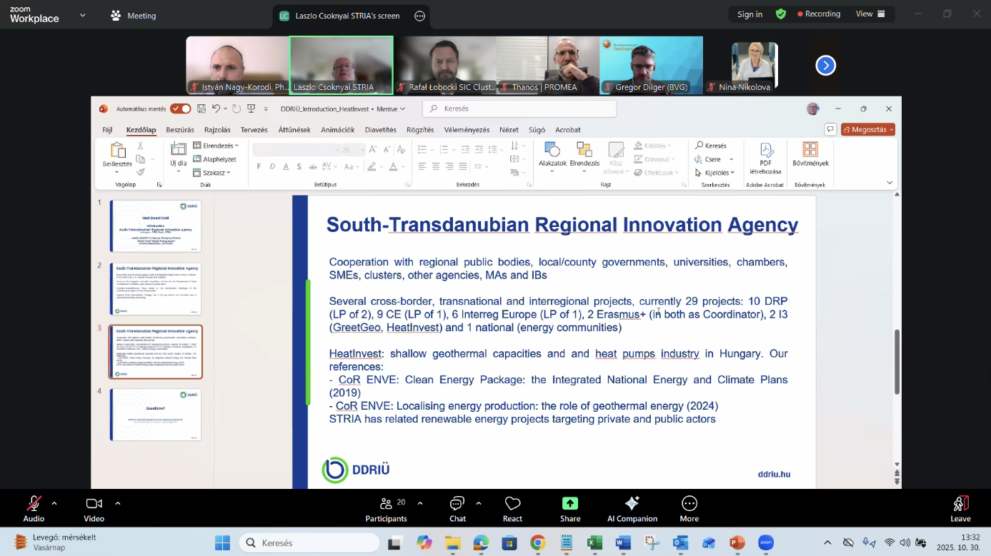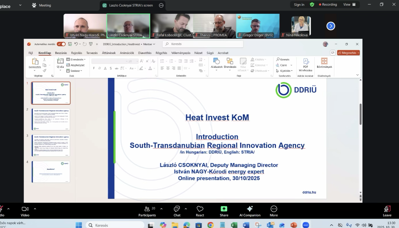 2025. október 30-án hivatalosan is elindult a HeatInvest projekt, amelynek online Kick-off találkozóját a Kelet-Makedónia és Trákia Regionális Fejlesztési Alap (Görögország) koordinálta. Az Európai Innovációs Tanács és a KKV-k Végrehajtó Ügynöksége (EISMEA) által az I3 eszköz keretében finanszírozott projekt összehozza az egész Európából származó regionális innovációs ügynökségeket, klasztereket és energiaügyi szövetségeket, hogy elősegítse a klaszterek fejlődését és a hőszivattyú- és geotermikus energia értékláncban való befektetési készséget.