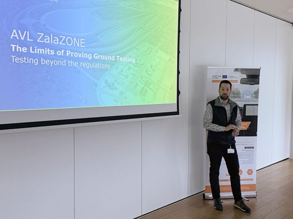 A következő napi program  talán legjobban várt része volt a ZalaZONE projekt bemutatása, majd pedig annak meglátogatása. Az európai kontinens három legnagyobb autóipari tesztpályája (AVL ZalaZONE) közé tartozó létesítmény infrastruktúrájának, szolgáltatásainak prezentációját követően a nemzetközi vendégeink maguk is megtekintették a tesztpálya területén autóipari cégek, kutatóhelyek számára elérhető tesztelési (vidéki útrendszer, smart city, autópálya, dombok modul, nagysebességű oválpálya, stb.) és kutatás-fejlesztési (laborok, műhelyek, stb.) lehetőségeket. A tanulmányút szervezői ismertették a tesztpálya önvezető járművek számára biztosított szolgáltatásait is.